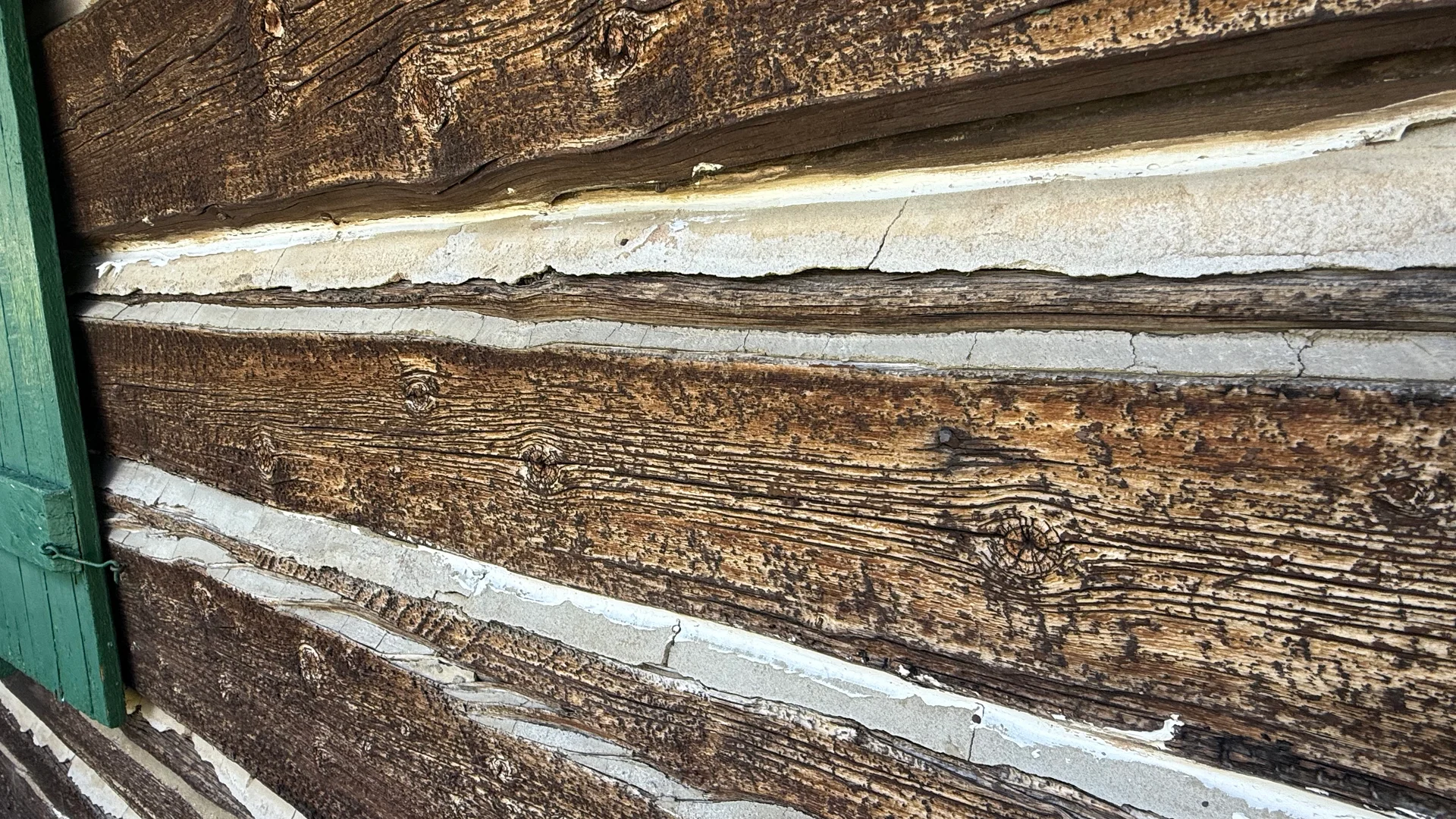 See how hail impacts lead to water intrusion and eventual log rot without proper intervention